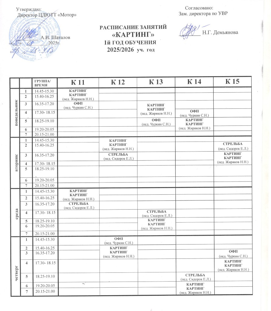 Картинг, Стрельба, Общая физическая подготовка |